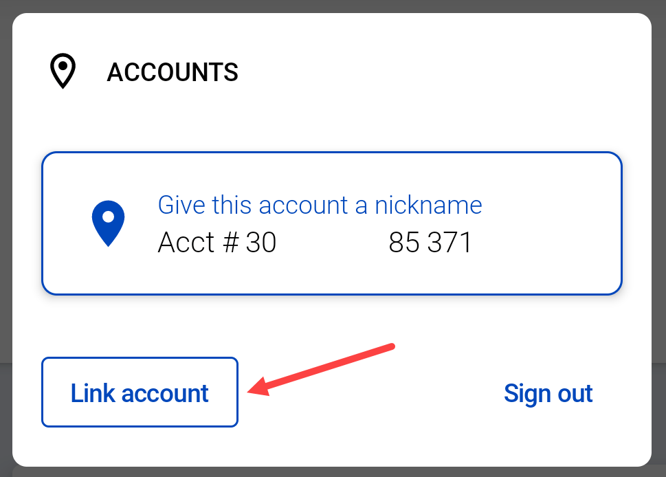 From any app screen, click on the account drop-down at the top left. This will open a menu with an option to choose which account you're viewing, or to add an account. Select "Link account," then follow the steps to enter the new account number and information.
