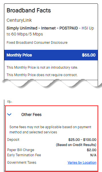 This is where you can find the name of your internet service provider, service plan and/or speed tier, and whether your plan is fixed or mobile. You can also see your monthly price, whether it’s an introductory rate or not, and the length of any applicable contracts for that rate.