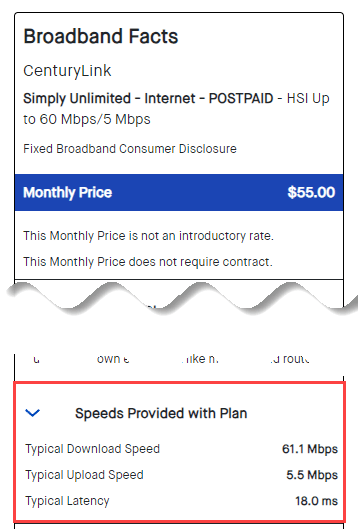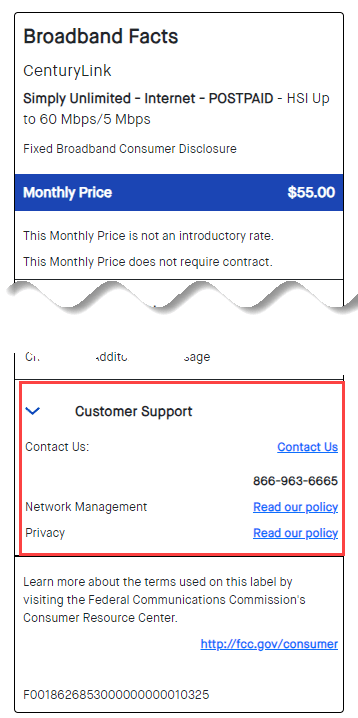 You’ll see Broadband Information Labels as you’re ordering new service. You’ll get an email that contains the information label. After you’ve purchased service, you can find your information label when you sign in to your CenturyLink account online.