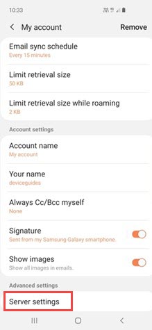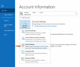 2. Under Account Information, select Account Settings, then choose Server Settings from the drop-down.