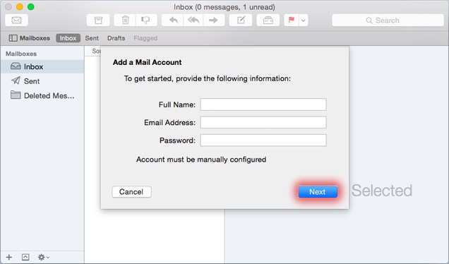 If you see a screen that says "Account must be manually configured," select Next and proceed to the next step.