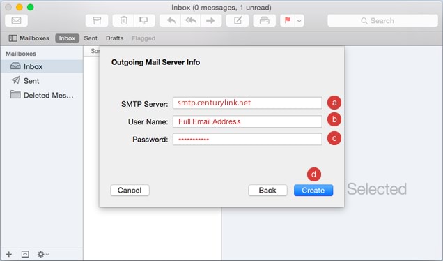 a. Enter smtp.centurylink.net for the "SMTP Server"