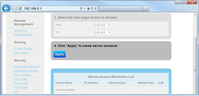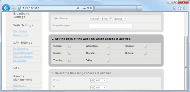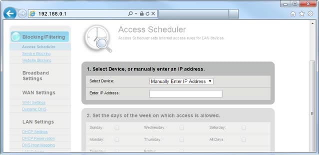 Access Scheduler allows you to select a specific device connected to your network and set days and times during which that device can access the internet.