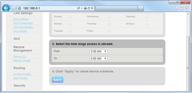 8. Set the from/to times to specify when you want to allow internet access.