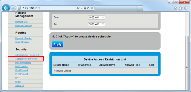 6. Follow the steps to edit the Application Forwarding settings.
