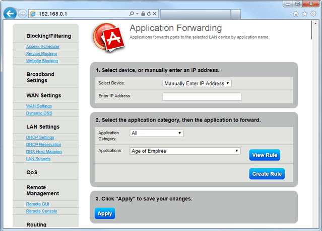 Application Forwarding allows you to forward a subset of programs to selected devices connected to your network.