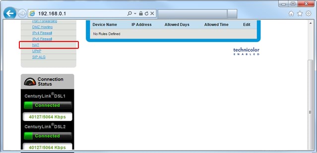 NOTE: CenturyLink recommends that you keep NAT enabled. Changes to this feature will reset some of the other settings on the modem. Do not proceed without understanding the technical impacts of using this feature.