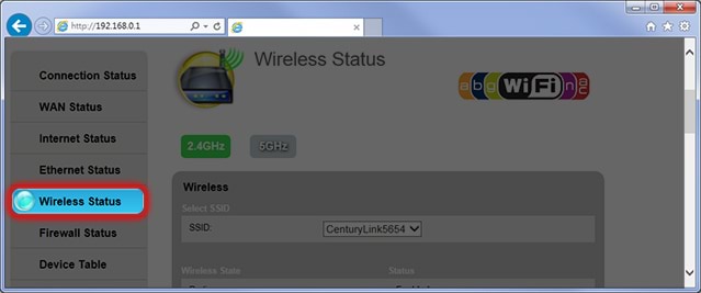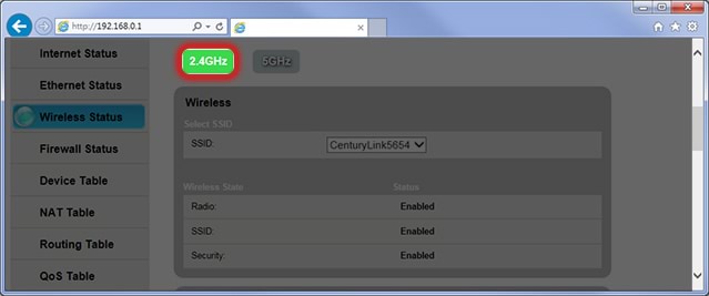 6. Select 2.4 GHz or 5 GHz to view settings for each of your modem's wireless frequency bands (some modems may only have 2.4 GHz). If your modem is dual-band, you can repeat these steps for each frequency.