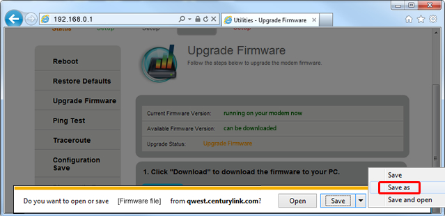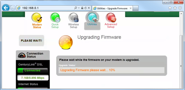 Firmware is the software programmed into your modem that makes it run. Firmware is updated periodically to add new features and keep modems performing their best. Firmware updates are done automatically through the CenturyLink network, so as a rule you never have to think about it. However, if your modem isn't working properly, you can sign in to your modem settings to make sure the firmware is up-to-date.