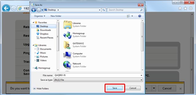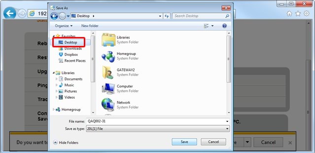 9.  Select Desktop (or choose another folder if you prefer), then click Save. The downloaded firmware file is now saved on your computer.