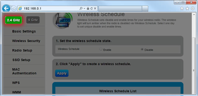 5. Select 2.4 or 5 GHz in the left sidebar.