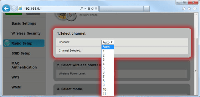 7. Select a channel, from 1 to 11. Learn how to check your modem's wireless status for the best available channel.