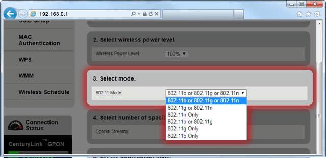 9. Select a 802.11 mode.