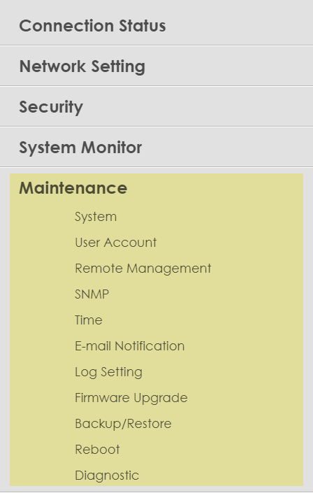The Maintenance menu gives you a number of settings and actions that help keep your modem running well over time, including these options: