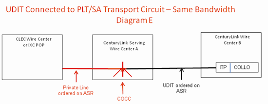 - UDIT connected to a Private Line Transport circuit of the same bandwidth via a COCC. See diagram E.