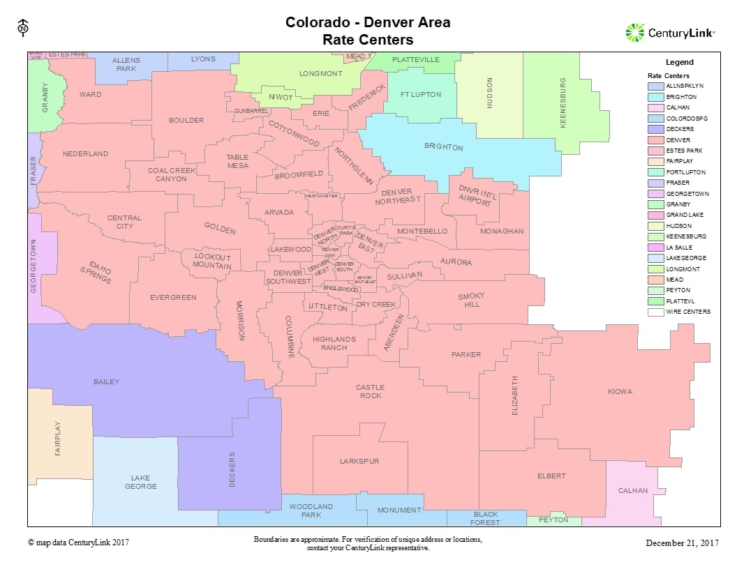 Rate Center Maps display geographic coverage in CenturyLink QC.
