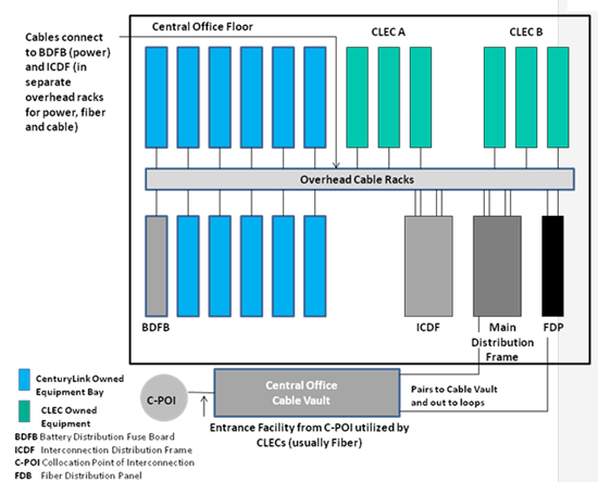 Upon completion of the Collocation site, you assume ownership of the Equipment Bay and are responsible for removal of the bay upon Decommissioning of the site. Equipment includes all CLEC owned electronic equipment, equipment racks, mounting hardware, and CLEC supplied cable (including direct CLEC-to-CLEC cables). You must file a Method of Procedure (MOP) with the Central Office Supervisor so that CenturyLink can remove the fuses prior to the CLEC removing any equipment or power cabling.