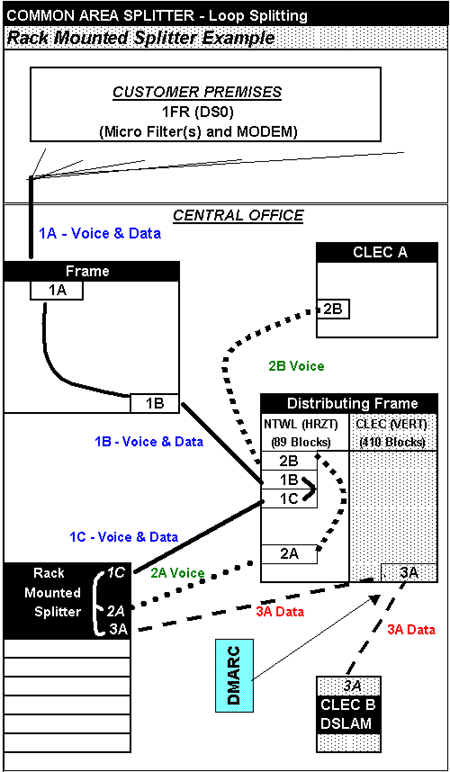 Under the first two options (relay rack or ICDF) the POTS splitter will be appropriately hard-wired or pre-wired.