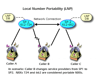 - Caller B cannot be found on Service Provider (SP) 1's switch, so a query is launched to the SP 1's LNP Database (DB) to determine the LRN for Caller B.