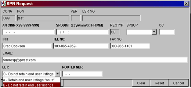 NOTE: Keep in mind that Required fields for accurately Provisioning of the request are; CCNA, PON, REQTYP, SPDDDT, CC, TEL NO, and the new End User Listing Treatment (ELT) field.